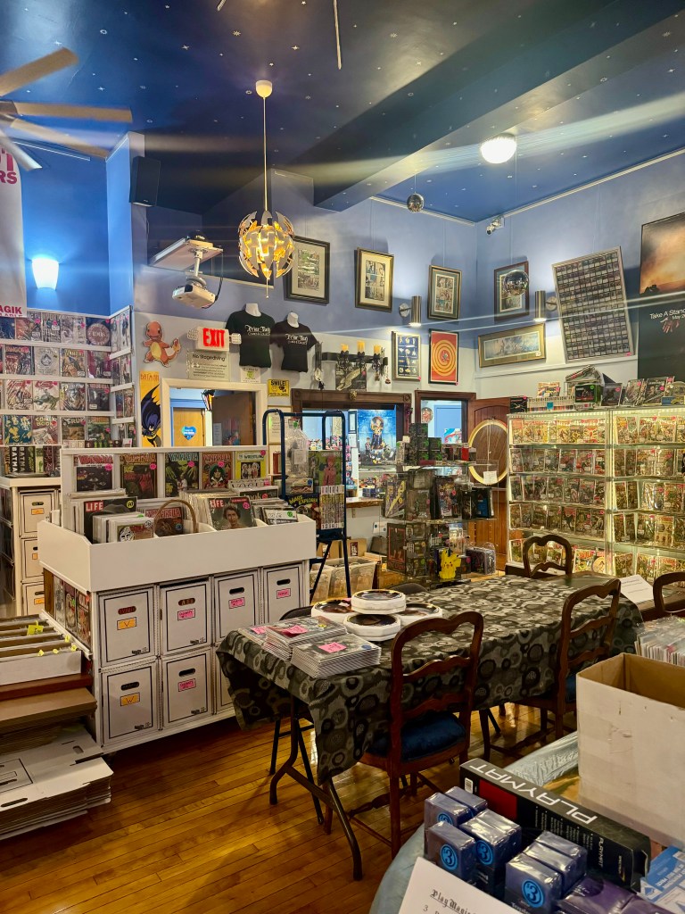 “Phenomenal experience, really cool space with decades worth of memorabilia covering every inch of the store. The owner was incredible helpful and gave me a tour of the shop. When I mentioned I heard there was a Godzilla X Justice League comic out he found every issue they had in stock. Had a lot of rare and hard to find OOP books and variants. The employee at the desk chatted to me about card games and offered a ordering service for any new comics I might want in the future.”